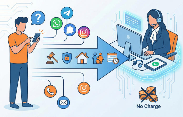 WhatsApp / Arattai / Telegram / Signal / Instagram, email या phone के माध्यम से अपनी कानूनी समस्या की संक्षिप्त व्याख्या एक बार में भेजें।